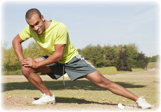 动作:双脚呈前后弓箭步姿势,双手扶于大腿上。后脚整个脚掌完全着地,足底部有完全伸展的感觉。