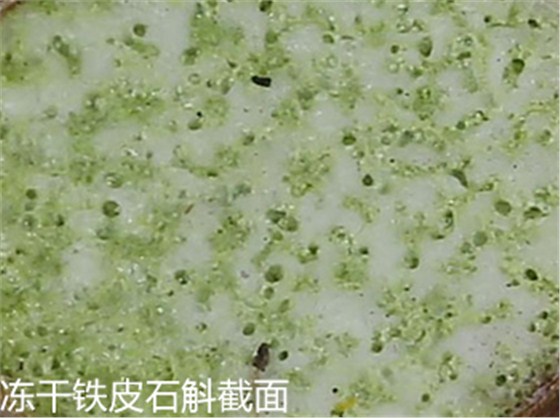 冻干铁皮石斛是利用真空冷冻干燥技术得到的,冻干后未破坏细胞原有的形态并形成了疏松的海绵状,几乎100%破壁,而且将大部分的有效物质牢牢锁住。因为冻干的整个加工过程,温度保持在零摄氏度以下,因而对酶,蛋白质,核酸等不耐热物质无破坏作用,又在真空的状态下,药材中易氧化的成分不会被氧化。